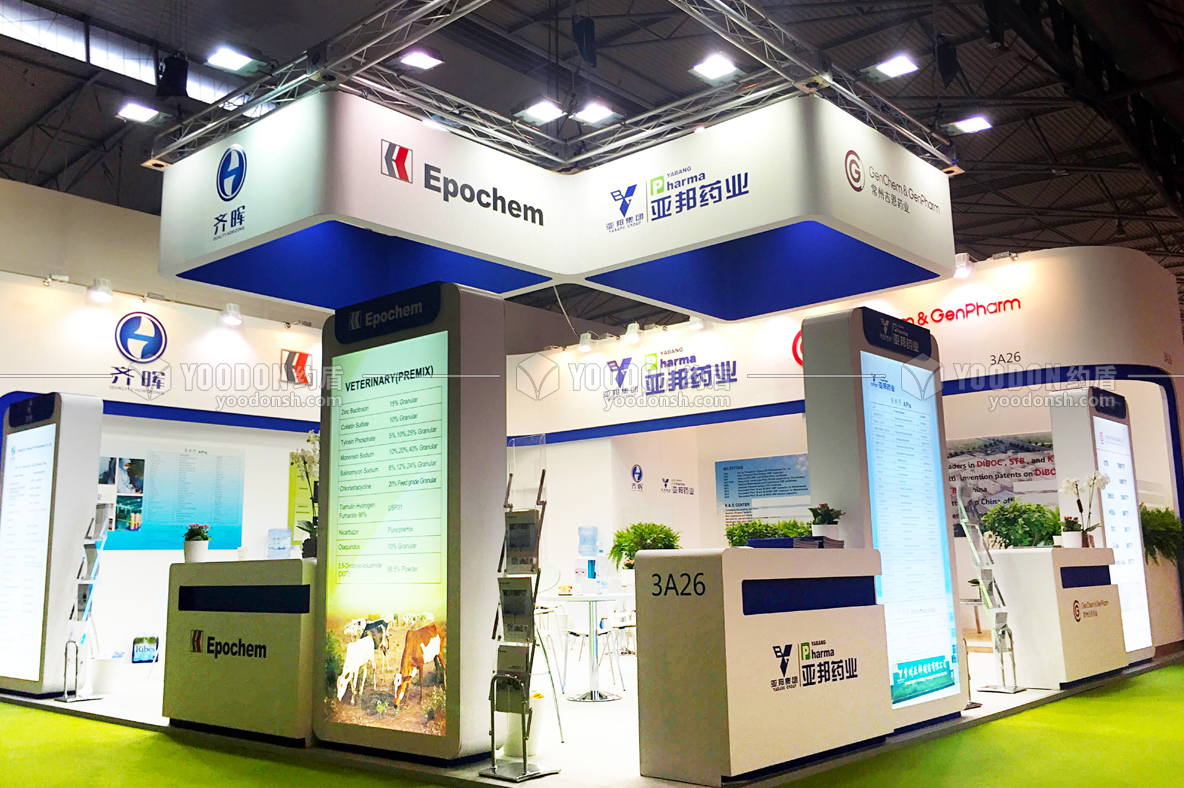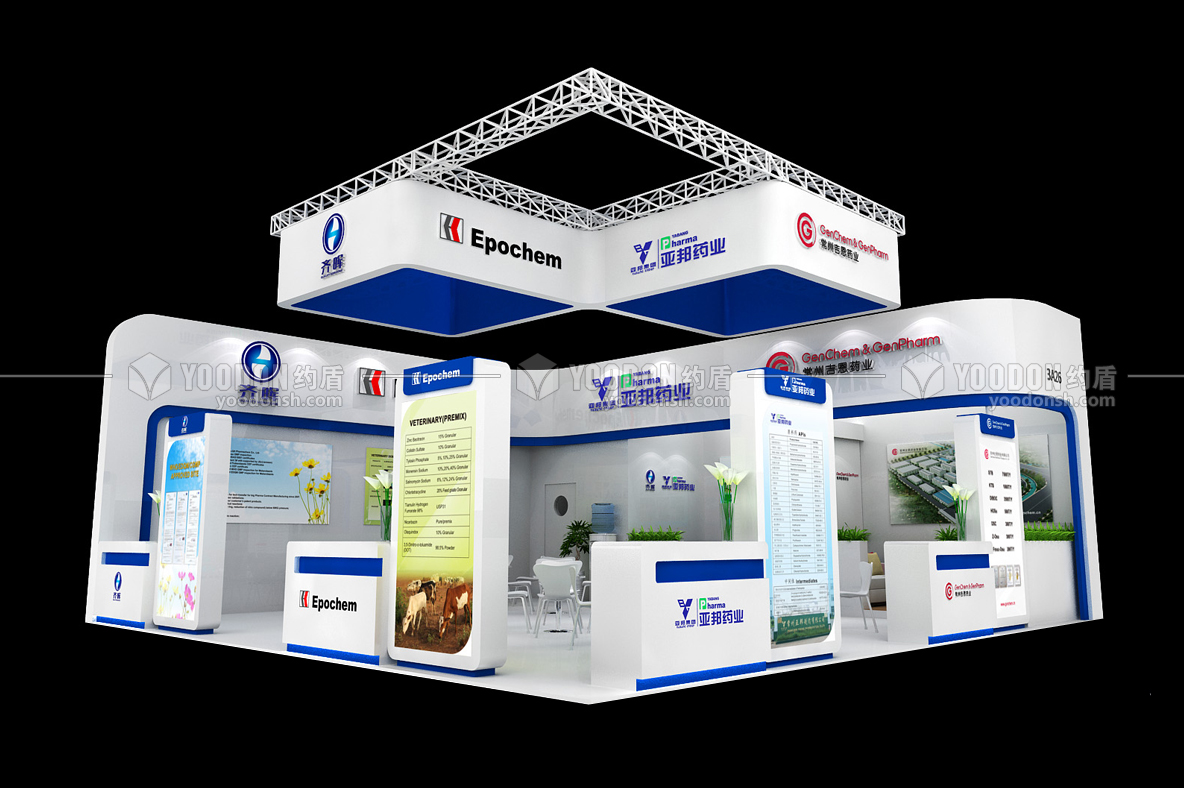 亞邦藥業(yè)是一家科工貿(mào)一體化的新興醫(yī)藥集團,此次參加瑞士展會,會展設(shè)計搭建的主題色彩以天藍色為主,兩面開口設(shè)計,兩面開口處是企業(yè)產(chǎn)品介紹的海報設(shè)計。