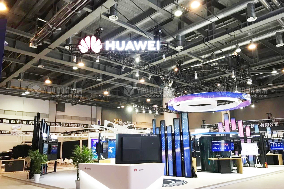 華為展臺搭建設計的風格高科技高智能,引領時代的潮流。