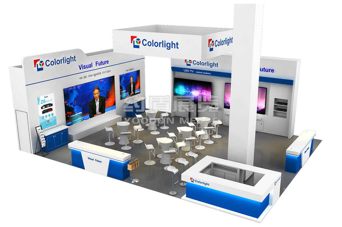 卡萊特展會設計搭建亮點在于幾個電視演播廳,前方擺放的桌椅方便大家直觀的體驗。卡萊特的產品被普遍應用于世界各地的重大賽事活動,商業廣告,演藝舞臺,電視演播廳,商業中心等場合;卡萊特的服務網絡遍及全球,擁有深圳、北京、西安、上海、成都、美國、荷蘭7家公司和分布于全球的50個服務網絡,數百名技術服務工程師為世界各地的客戶提供專業高效的技術服務。