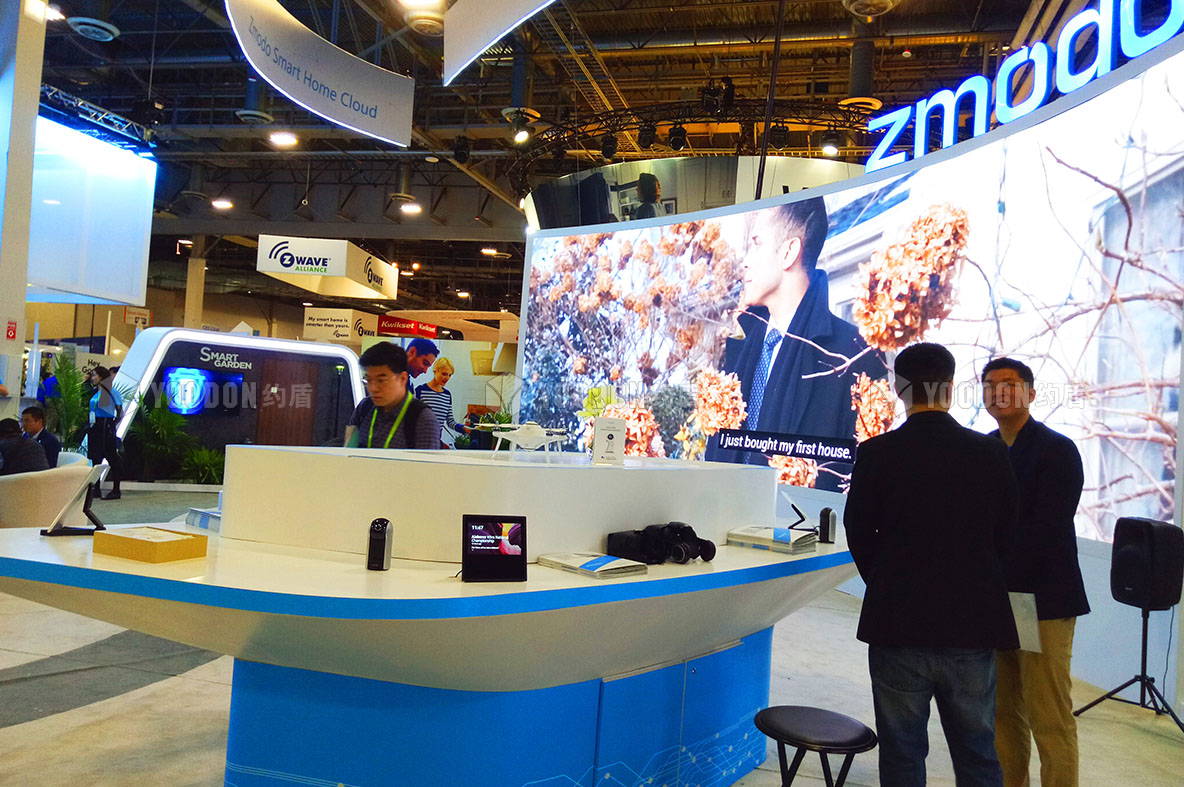 本屆展會約盾國際展覽同時為智美達提供了展位設計搭建服務,智美達是一家總部位于中國廣東深圳南山科技園的高科技跨國公司,主要從事自有品牌的智能產品的設計、研發、生產和銷售,涉足領域包括智能家居、辦公自動化和智能視頻等。智美達擁有開放文化、跨國界的產品、研發、制造業、市場和服務部門,在美國伊利諾伊州、澳大利亞悉尼、德國漢堡設有本土分支機構,在廣東深圳和江蘇鹽城擁有自己的制造基地。