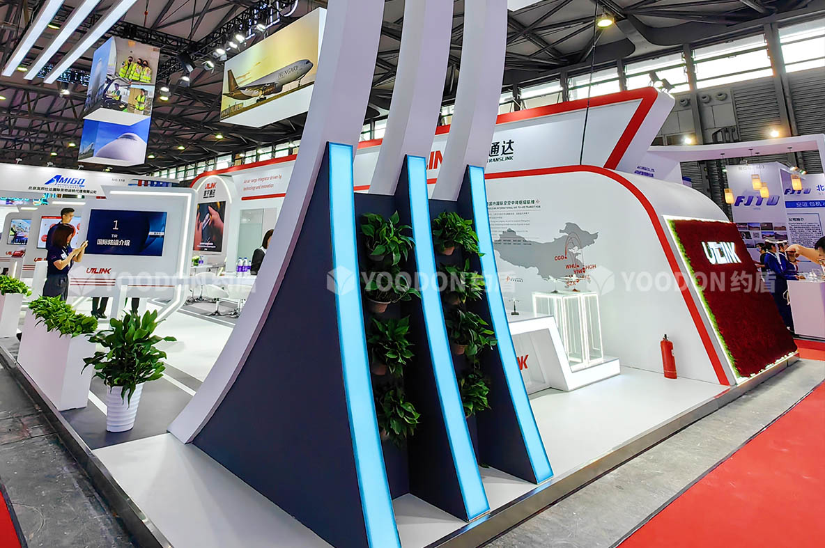 展位從不同角度都通透明亮,非常吸睛,多處LED大屏幕、柔性燈帶冰屏使用,讓展臺動感起來,玫瑰花展臺的設(shè)計更是新穎之處,擴(kuò)大視覺的同時大氣渲染了寰宇通達(dá)的國際品牌形象,聚擾眼球,給參展觀眾帶來不一樣的視覺盛宴。