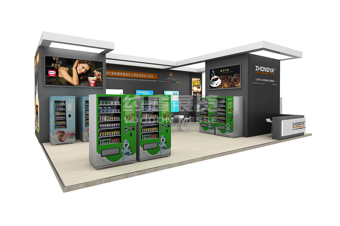 中亞機械是國家火炬計劃重點高新技術企業,公司研發中心被認定為"中國乳品包裝機械研發中心"、"中國食品包裝機械研發中心"、"浙江省優秀企業技術中心". 中亞機械始終將技術創新作為核心驅動力,目前研發中心擁有機械設計、自動化控制、生物工程等領域中高級技術人才170余名.中亞機械展臺設計搭建的風格圍繞公司企業文化和公司產品的特點自助售貨系統展開.